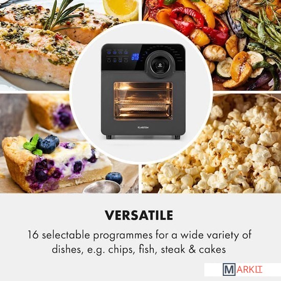 Во фритюрнице Klarstein AeroVital Cube Chef с емкостью 14 л и двум нагревательным элементам (верхний и нижний) вы можете безупречно жарить, запекать, готовить на гриле или запекать любые блюда.