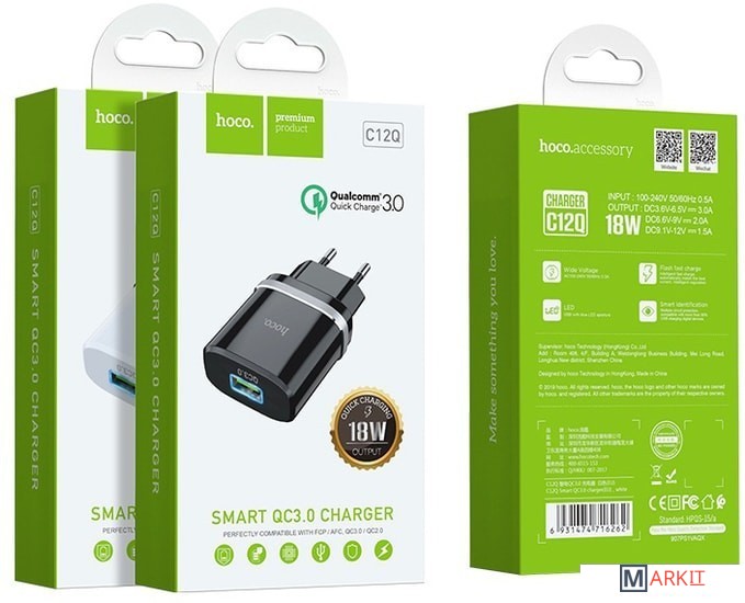 Markit » Зарядные устройства » Сетевое зарядное Hoco C12Q (черный)